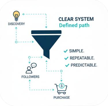 No more guessing how attention becomes income. You get structured systems that move followers through a defined path from discovery to purchase. Simple. Repeatable. Predictable.