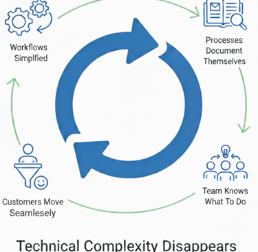 The technical complexity disappears. Workflows simplify. Processes document themselves. Your team knows what to do without asking. Customers move through your systems without confusion.